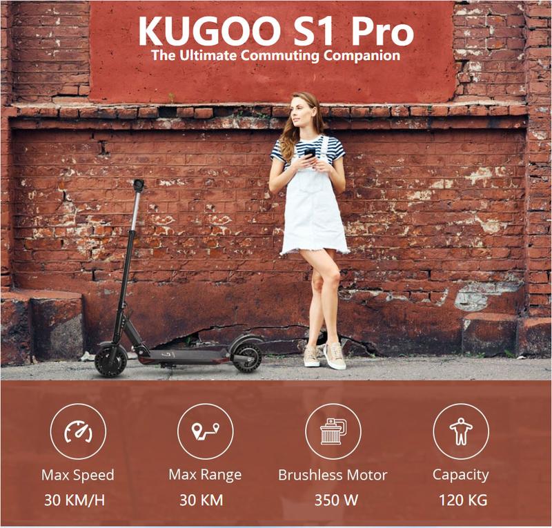 KUGOO S1 Pro Folding Electric Scooter 350W Motor LCD Display 3 Speed Modes Max 18 MPH