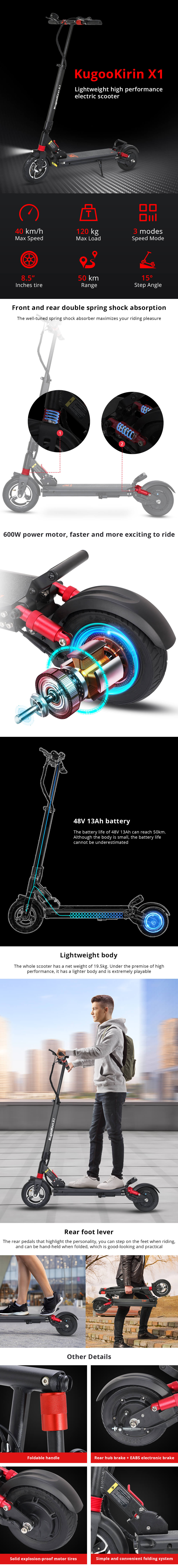 [NEW IN] KUGOO KIRIN X1 Folding Electric Offroad Scooter 600W Brushless Motor Customised Hub Brake Lightweight Body